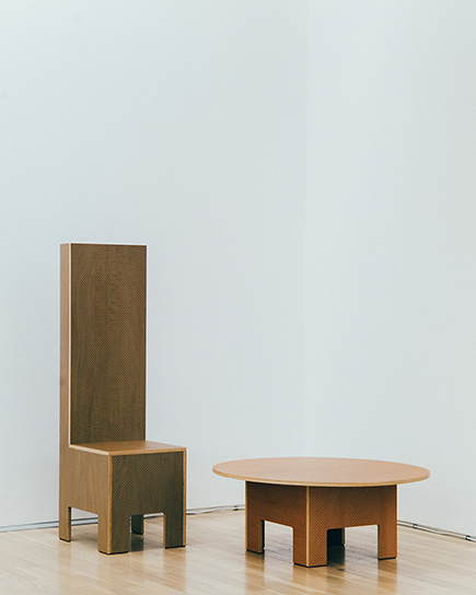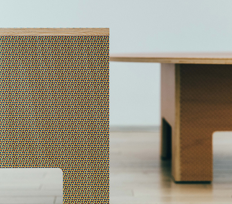 長坂さんのほうでは、今回の展示作品として家具を制作し、〈PIXEL TABLE〉、〈PIXEL CHAIR〉