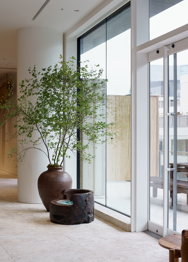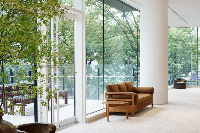 表参道の並木を望む、明るく開放的な空間。