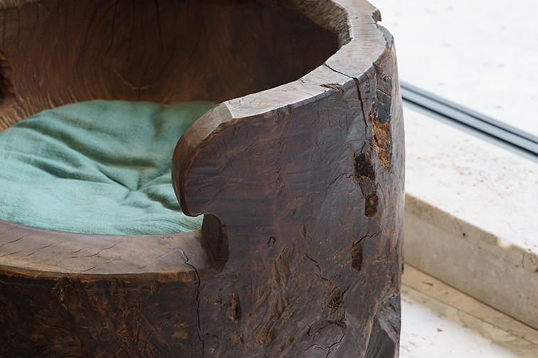 臼(うす)を再構築した椅子など、